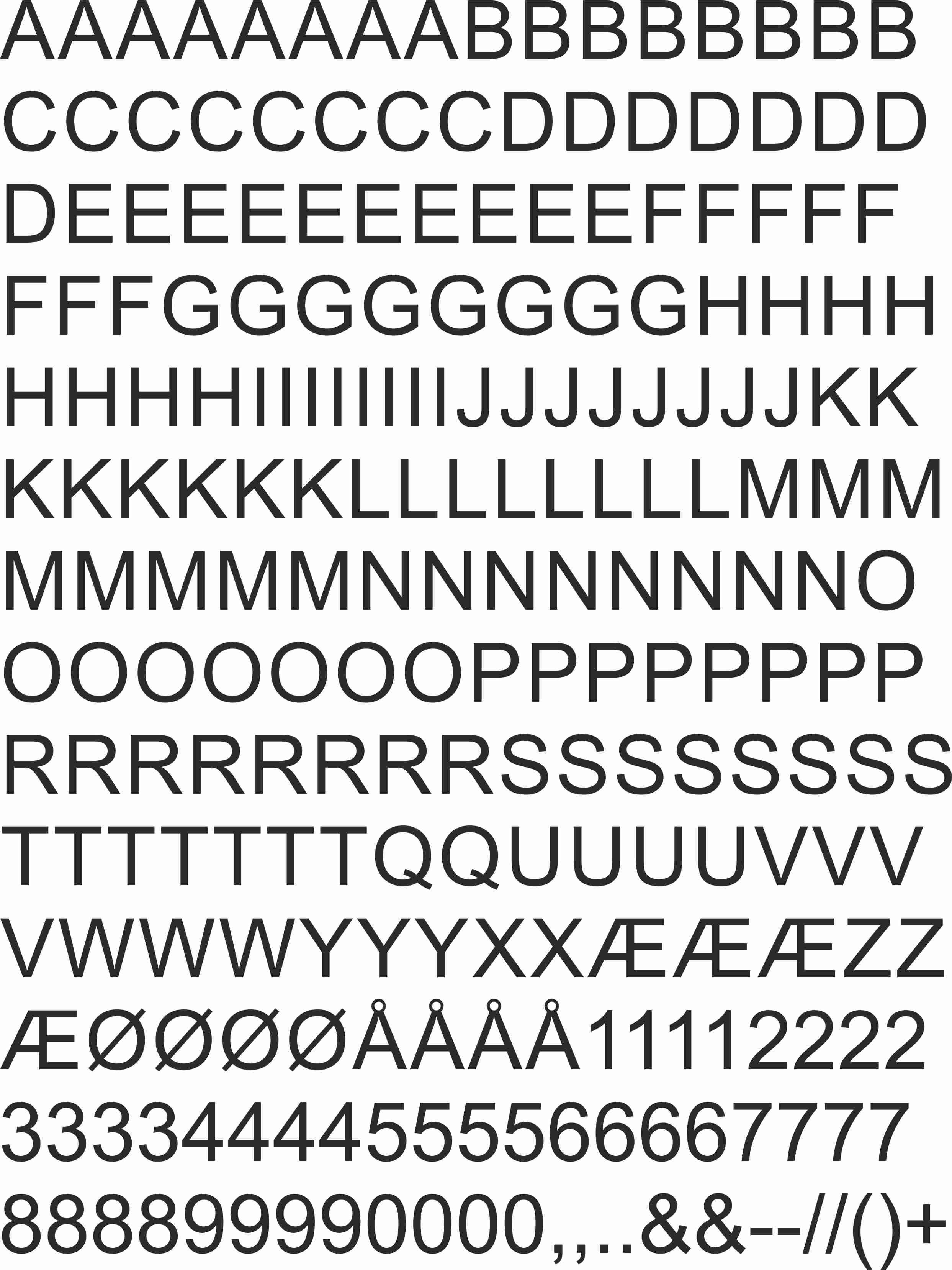 Arial, A4 ark, 13 mm