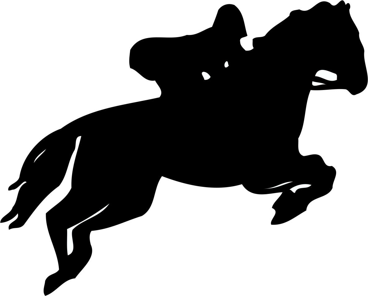 Springhest med rytter i silhuet skåret ud i gennem farvet folie. Klistermærket er vejrbestandigt. Kan klæbes på bilen, væg, døre, vinduer, ipad, pc m.m